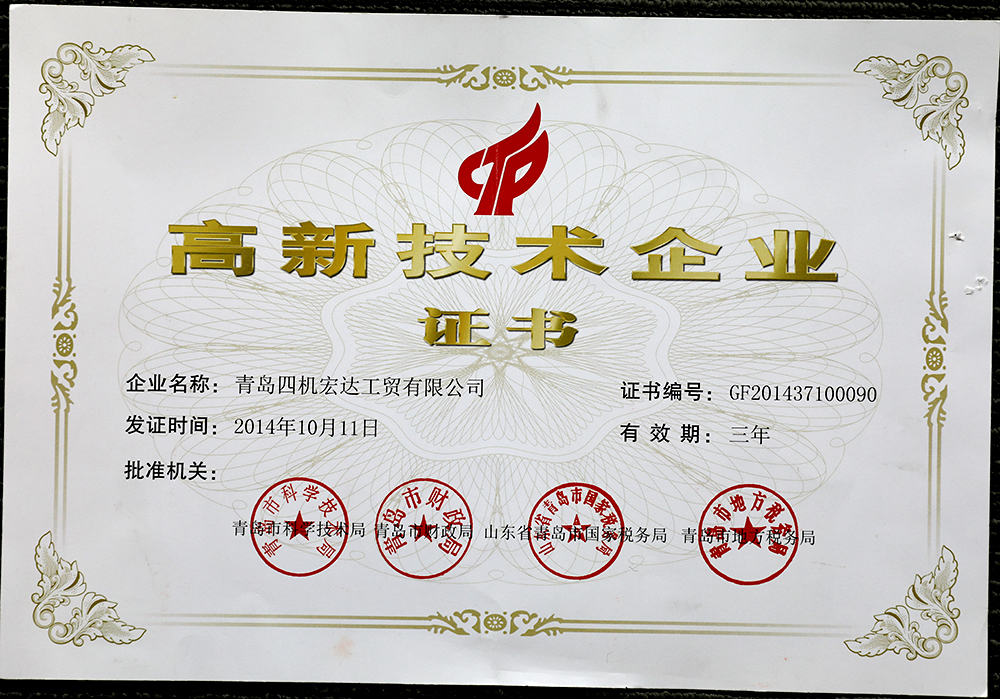 2011年10月,首次被評定為青島市高新技術企業,保持至今。